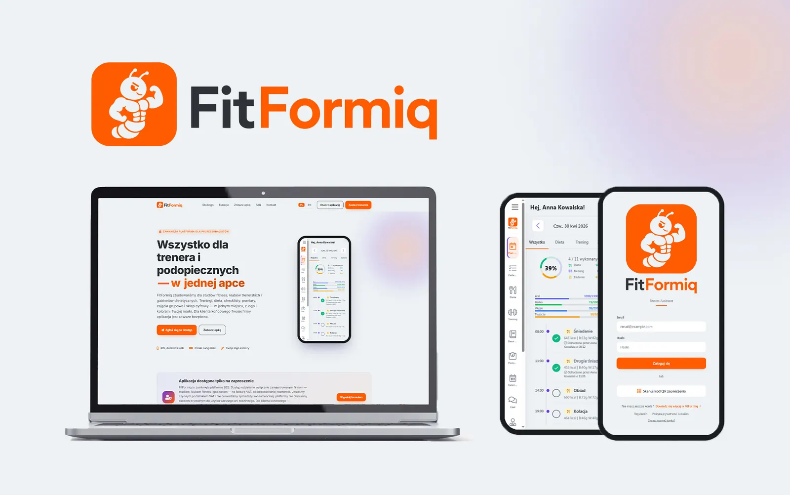 Pełna identyfikacja wizualna, aplikacja i strona www dla Fit Formiq — platformy B2B dla studiów fitness, klubów i gabinetów.